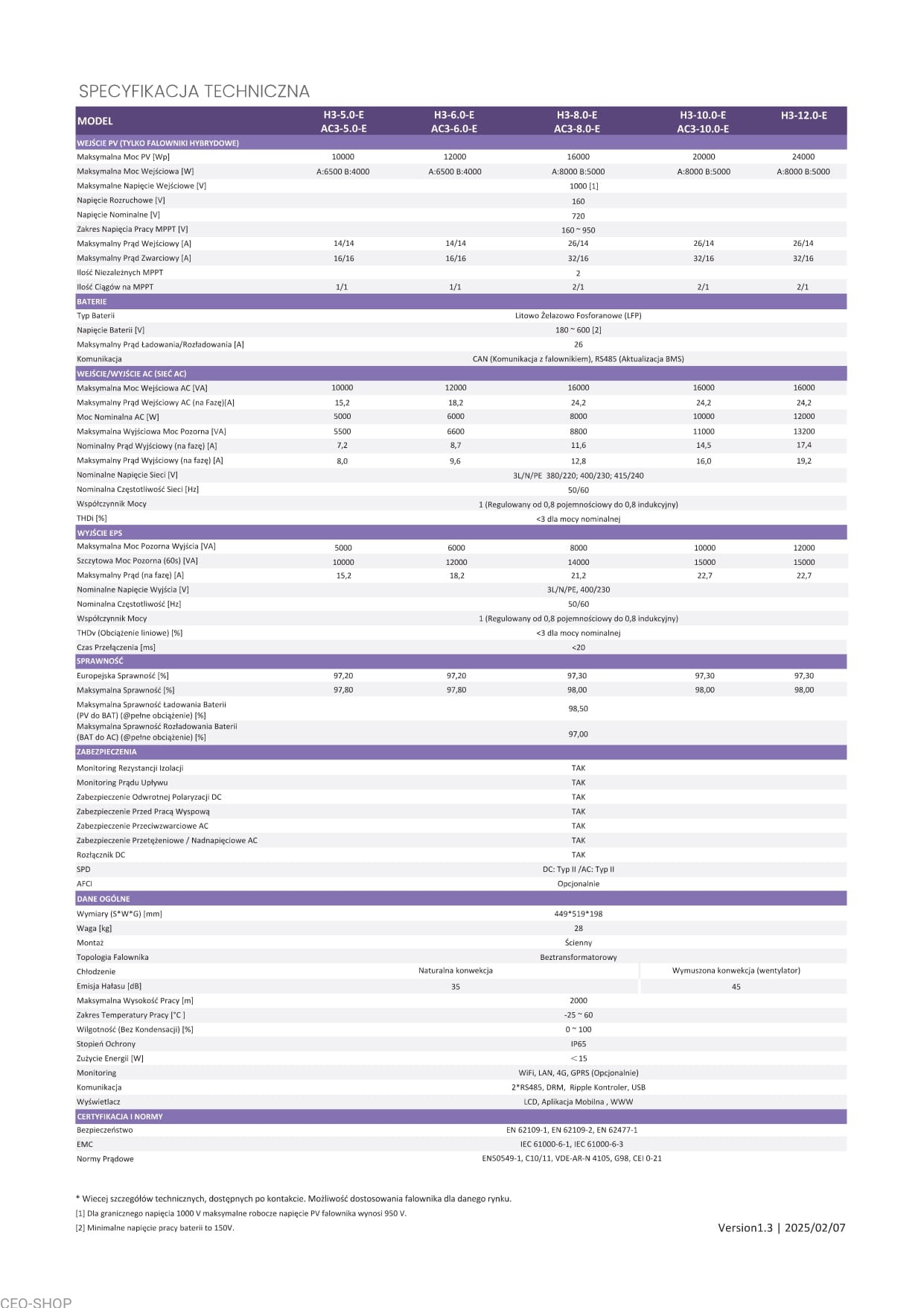 Falownik FoxESS H3-10.0-E to nowoczesne urządzenie przeznaczone do instalacji fotowoltaicznych o mocy 10 kW. Charakteryzuje się wysoką sprawnością, co przekłada się na efektywne wykorzystanie energii słonecznej.