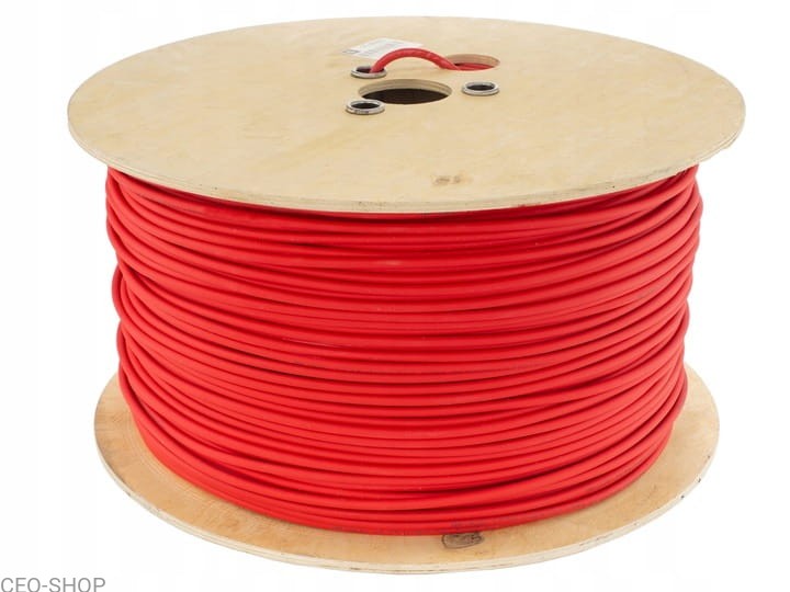 Kabel oferowany na aukcji jest w kolorze czerwonym, cięty na zamówienie klienta i wysyłany w odcinkach.