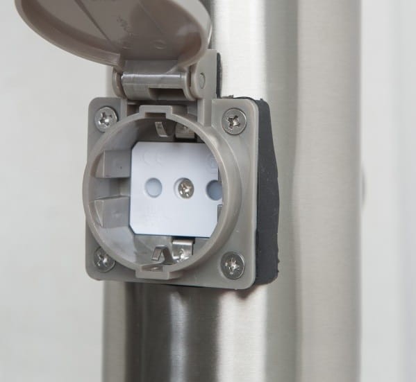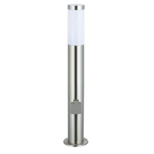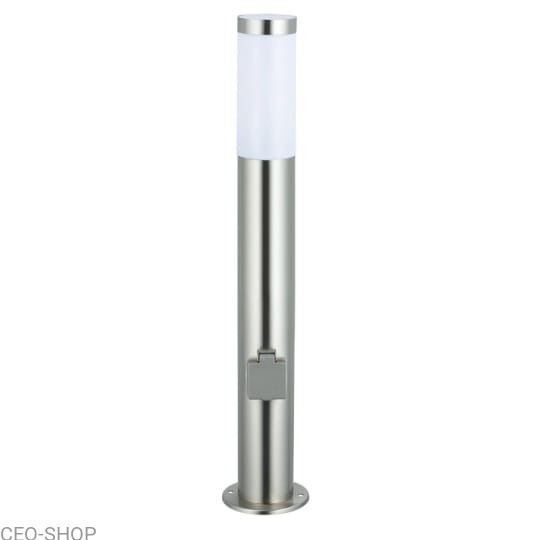 Nowoczesna i trwała lampa ogrodowa o wysokości 80 cm, wykonana ze stali nierdzewnej i poliwęglanu. Wyposażona w dwa praktyczne gniazda 230V oraz gwint E27 do żarówek do 60 W. Idealna do oświetlenia ogrodu i jednoczesnego zasilania urządzeń ogrodowych.