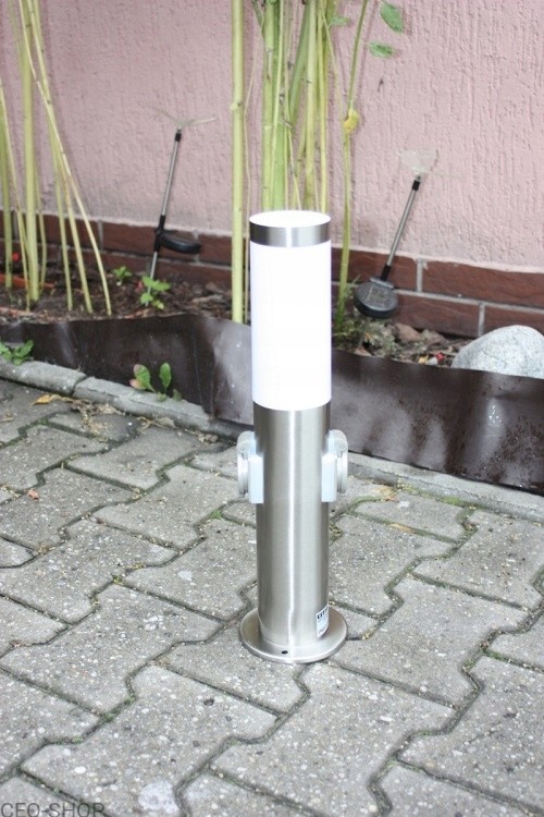 Słupek ogrodowy NEW YORK 45 cm to solidny i elegancki element oświetlenia zewnętrznego. Wykonany ze stali nierdzewnej, odporny na warunki atmosferyczne (IP44), wyposażony w dwa gniazda 230 V oraz trzonek E27 – idealny tam, gdzie potrzebna jest zarówno funkcjonalność, jak i estetyka.