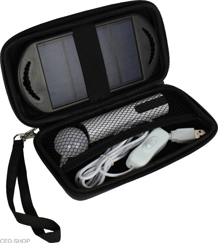 Zestaw wyposażony jest w lampkę LED z przewodem USB, którą można podłączyć bezpośrednio do powerbanku – idealne rozwiązanie do oświetlenia namiotu czy wnętrza przyczepy kempingowej. Wszystkie elementy umieszczono w estetycznym, poręcznym etui, które ułatwia przechowywanie i transport całego zestawu.